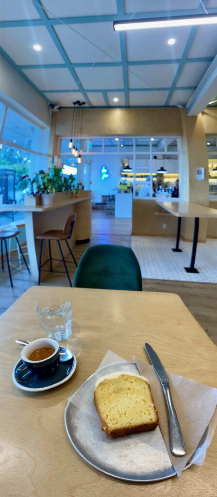 The coffee, from Supreme, was done well leaving a fruity, full mouthfeel. It paired well with the fluffy lemon loaf. It was surprisingly light in texture, and had a real citrus oil kick, balanced with sweetness.