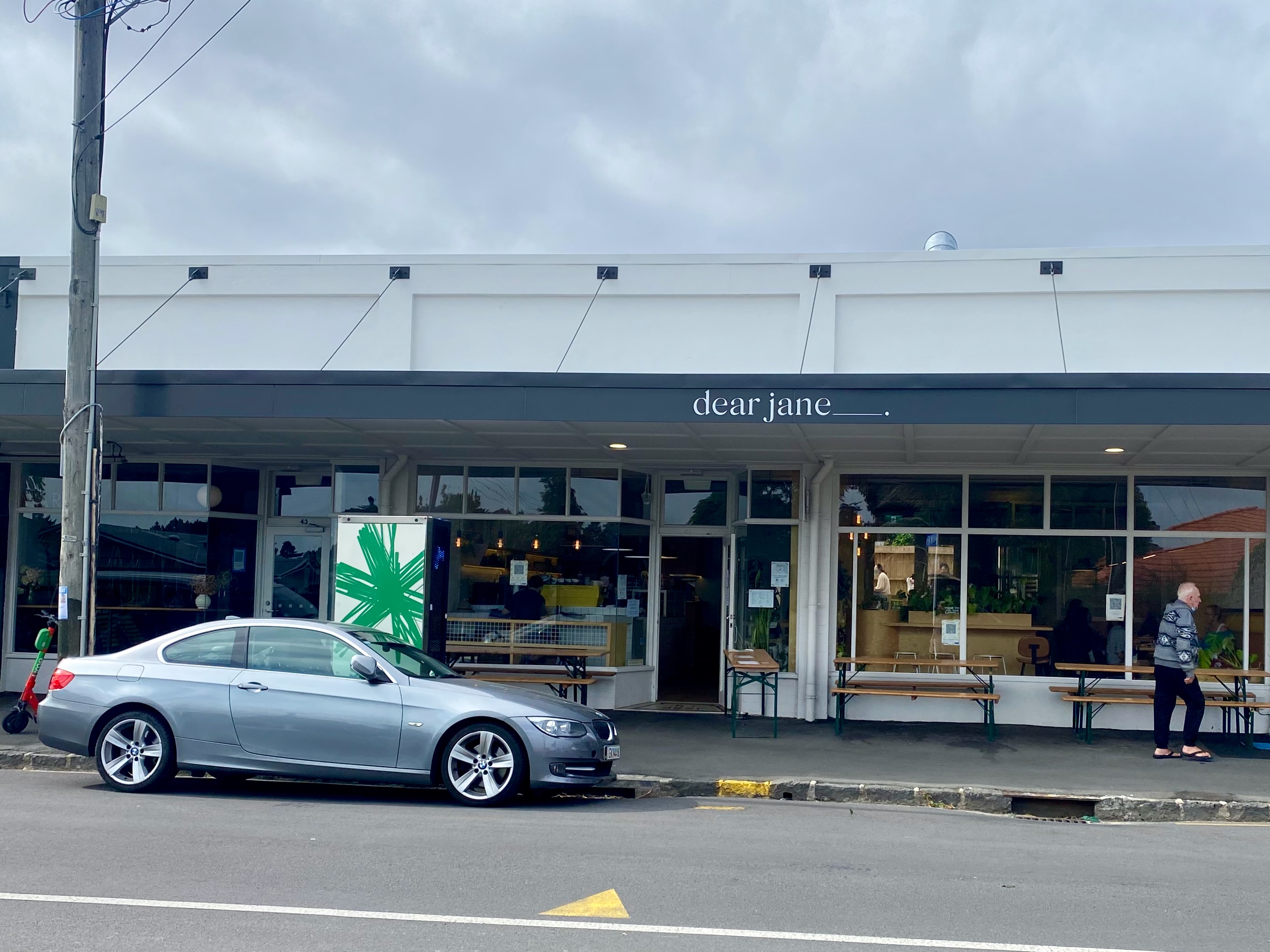 I planned to meet a friend, and Dear Jane cafe was walking distance from her Mt Albert home. There was plenty of roadside parking, servicing the cafe, Bar Martin, and a scattering of other shops.